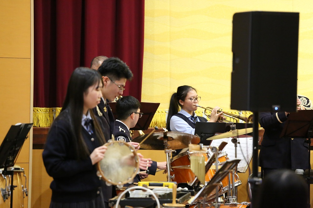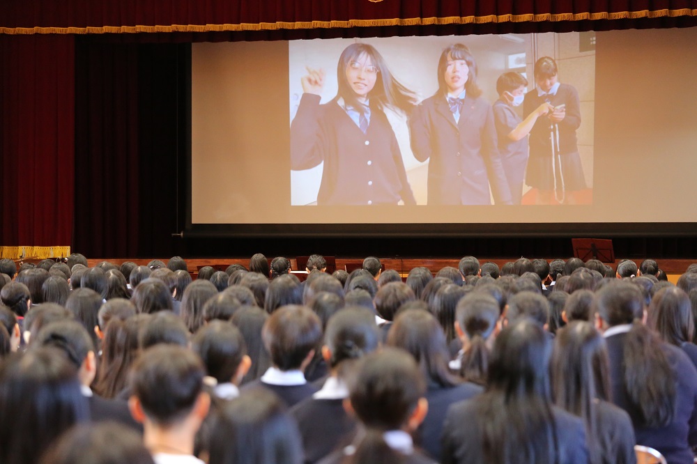 初めに生徒会執行部、文化祭実行委員からあいさつと啓明祭の諸注意の案内があり、その後、陸上自衛隊第10音楽隊による演奏が行われました。