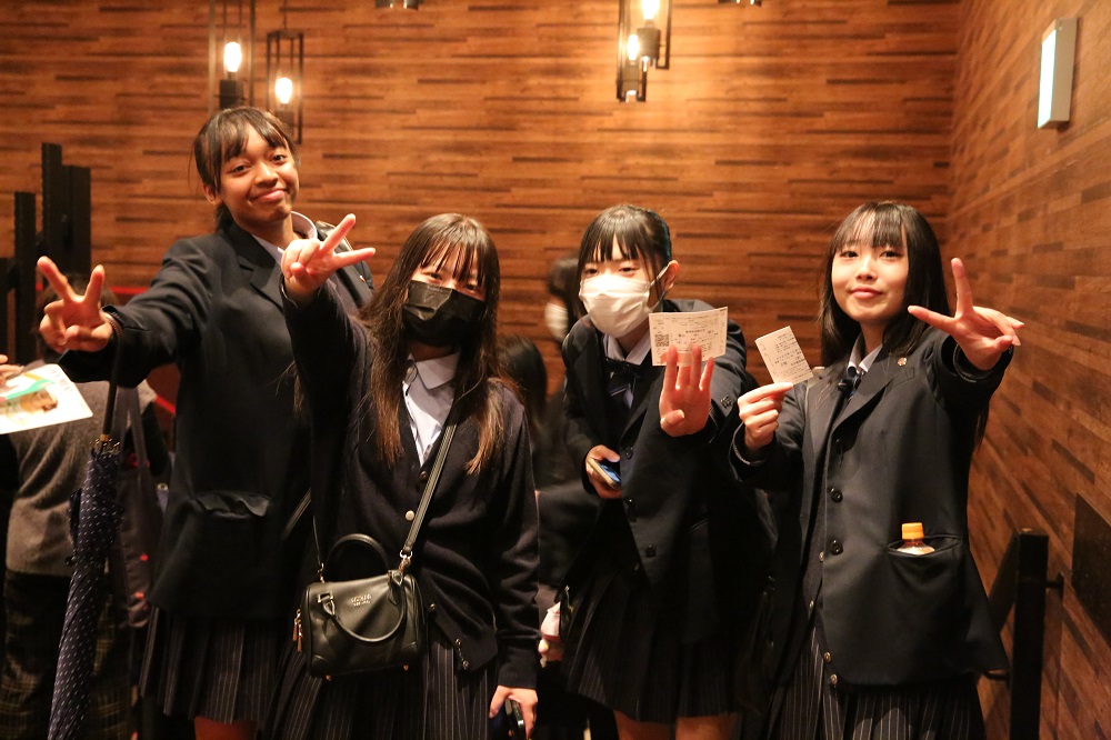 また、劇の終わりの団員総出のミュージカルでは生徒も観客も立ち上がり拍手や手を振り会場が一体となり、ミュージカルに夢中になっていました!